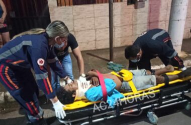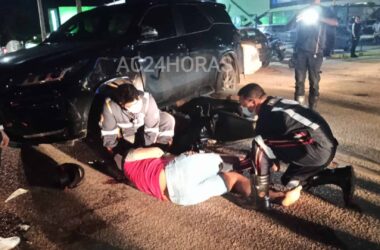 Uma colisão entre uma caminhonete e uma moto deixou o motociclista Akison Kauan Ferreira de Oliveira, de 20 anos, gravemente ferido na noite desta quarta-feira,