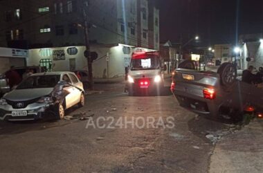 Uma colisão entre dois veículos deixou uma mulher identificada como Rafael Justino de Moura, de 26 anos, ferida e ocasionou um capotamento no início da