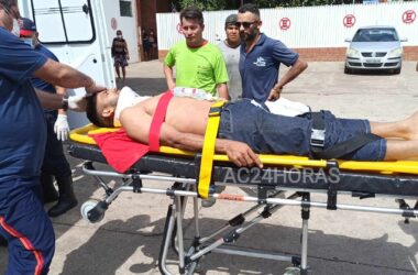 O jovem Jegchelon Sebastião Aguiar, de 22 anos, ficou gravemente ferido no final da manhã desta sexta-feira, 15, durante uma derrubada de árvores em uma