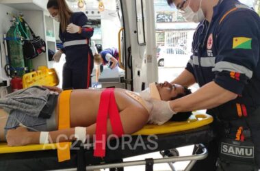 Uma colisão entre um veículo e uma motocicleta deixou Yara Adriana Martins, de 43 anos, gravemente ferida na manhã deste domingo, 26, na Estrada do