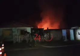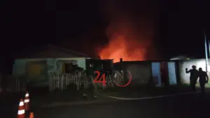 Um incêndio de grandes proporções destruiu totalmente uma residência de madeira e deixou outra casa parcialmente destruída na noite desta sexta-feira (16), na Travessa Santa