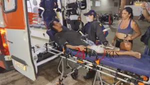 O jovem Eduardo Nogueira Rodrigues, de 19 anos, que cumpre medidas judiciais com uso de tornozeleira eletrônica, foi ferido com um golpe de faca no