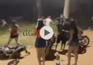 Uma briga generalizada interrompeu um piseiro na madrugada desta segunda-feira (13) na BR-364, Via Verde, em frente ao estacionamento de um hotel abandonado, próximo à