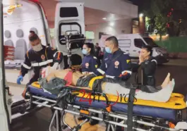 Um acidente de trânsito envolvendo um carro e uma motocicleta deixou Diego Meneses de Moura, de 18 anos, gravemente ferido na noite deste sábado, 27,