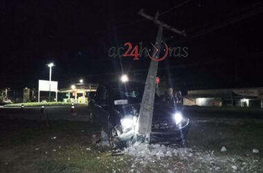 Um motorista não identificado perdeu o controle de uma caminhonete modelo Amarok, placa QLX-2C68, e colidiu contra um poste de energia na noite deste domingo,