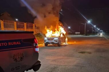 Um veículo de uma locadora foi alvo de um incêndio criminoso na noite desta quinta-feira, na Lourival Marques, na entrada do Conjunto Habitacional Cidade do