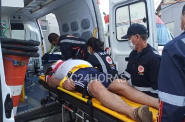 Clodomiro Lameira Júnior, de 59 anos, ficou ferido na tarde desta terça-feira, 11, após colidir sua motocicleta em uma caminhonete escolar no cruzamento da rua