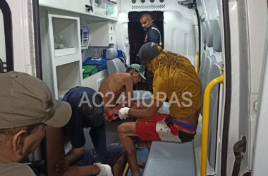 Um homem não identificado foi vítima de uma tentativa de homicídio após ser ferido a golpes de faca e terçado na noite deste sábado, 10,