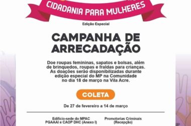 O Ministério Público do Estado do Acre (MPAC) lançou uma campanha solidária, visando a arrecadação de produtos para serem doados durante a edição do programa