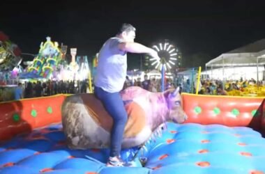 Touro mecânico é atração na Expoacre 2023; repórter do ac24horas participa do desafio
