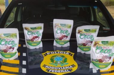 A Polícia Rodoviária Federal apreendeu nesta quarta-feira (25) 4,36 quilos de cocaína diluídos em frascos de óleo de coco. Dois venezuelanos que viajavam no ônibus