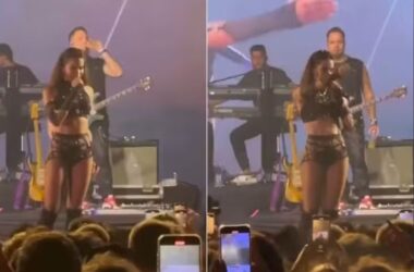 Anitta deu uma baita bronca em um fã durante um show em Timbau do Sul (RN). A funkeira estava em cima do palco quando, em