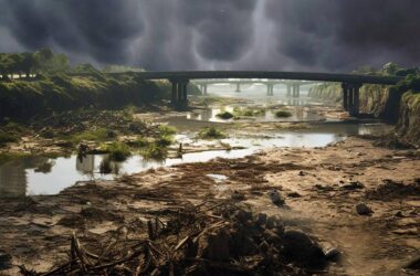 A pergunta feita para uma Inteligência Artificial construiu a cena que ilustra parte desta reportagem. As referências foram o atual quadro das mudanças climáticas em