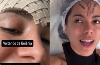 Anitta, 31 anos, surpreendeu os fãs ao aparecer em suas redes sociais, nesta terça-feira, 10, com um enorme curativo no rosto, na altura da testa.