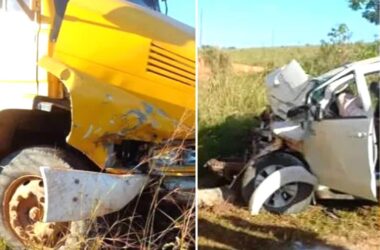 Quatro pessoas ficam feridas após colisão entre caminhão e caminhonete na BR-317
