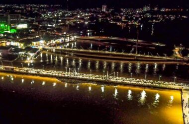 Imagens da ponte Juscelino Kubitschek, conhecida popularmente como Ponte Metálica, na capital acreana, feitas na manhã desta terça-feira, 28, mostram a força da enchente do