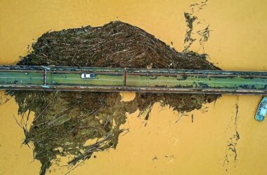 Imagens da ponte Juscelino Kubitschek, conhecida popularmente como Ponte Metálica, na capital acreana, feitas na manhã desta terça-feira, 28, mostram a força da enchente do
