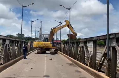 O Deracre vai usar uma escavadeira hidráulica para tentar remover o balseiro que se acumula e pode comprometer a estrutura da ponte Juscelino Kubitschek, conhecida