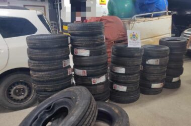 Militares do Batalhão de Policiamento de Trânsito (BPTRAN), apreenderam na madrugada desta terça-feira, 14, oitenta pneus de origem boliviana, após uma abordagem a um veículo.