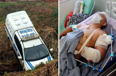 O Policial Militar que estava na viatura que caiu dentro de um córrego na manhã de domingo, 25, durante uma perseguição policial, segue internado em