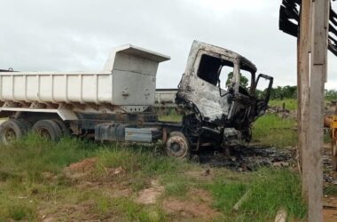 Imagens de vários veículos, incluindo caçambas de uma construtora no Envira, no Amazonas, fronteira com Feijó e Tarauacá, consumidos pelo fogo, foram enviados à redação
