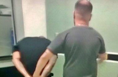 Escoltado por Policiais Penais, o detento Darcifran de Morais Eduíno Júnior (24), um dos autores dos disparos que mataram o jogador de futebol Tiago Oséias