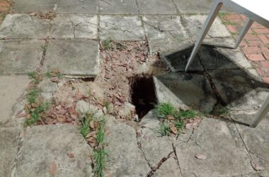 Um buraco localizado na área de eventos do Parque do Tucumã, onde está sendo realizado o tradicional arraial que atrai moradores de até outros bairros,