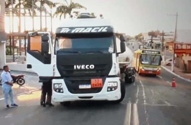 Uma carreta Volvo do tipo Julieta, com dois tanques contendo 40 toneladas de combustíveis, parou parte do trânsito na zona central no início da manhã