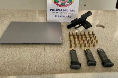 Policiais militares conseguiram recuperar uma pistola, várias munições, carregadores e um notebook. Os objetos apreendidos foram roubados de um policial militar de Rondônia durante um
