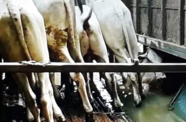 Uma carreta carregada com pelo menos 100 bezerros tombou na madrugada dessa terça-feira, 18, no quilômetro 916 da BR-364, próximo ao Distrito de Abunã, em