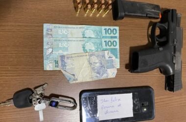 A Polícia Militar prendeu nesta segunda-feira (11), dois homens, de 19 e 21 anos, que portavam dois facões e uma pistola ponto 40, que havia