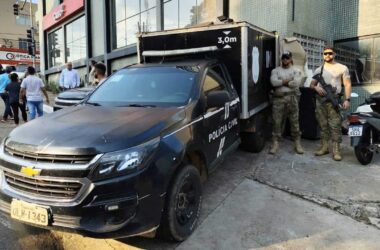 Policiais Federais e Civis estão na tarde desta terça-feira, 15, averiguando a caminhonete em que o delegado federal Fares Feghali estacionou próximo ao Centro Empresarial