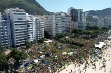 O ex-presidente Jair Bolsonaro (PL) e apoiadores realizam ato na orla de Copacabana, no Rio de Janeiro, neste domingo (16/3)…