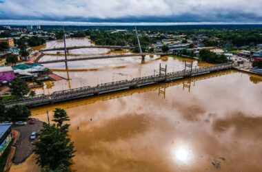 O governador do Acre, Gladson Cameli, esteve percorrendo o Rio Acre nesta sábado, 24, para monitorar as áreas atingidas pela cheia. O Rio Acre chegou