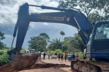 Uma linha de bueiro duplo se rompeu nesta segunda-feira, 12, após intensas chuvas na região do km 90 da Rodovia AC-40, em Plácido de Castro.