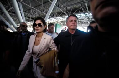 Impedido de sair do país, o ex-presidente Jair Bolsonaro acompanhou a mulher, Michelle Bolsonaro, até o aeroporto de Brasília, onde ela embarcará para participar da