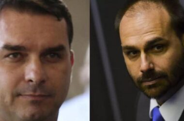 Osenador Flávio Bolsonaro (PL) e o seu irmão, o deputado federal Eduardo Bolsonaro (PL), estiveram na embaixada da Itália, em Brasília, para solicitar a antecipação