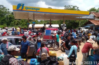 Peruanos continuam lotando o único posto de combustíveis de Assis Brasil, na fronteira do Acre com o país andino. De acordo com o prefeito Jerry