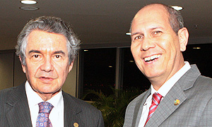 Ao lado do ministro da Defesa, Celso Amorim, e para público superior a 400 pessoas, a presidente da Subcomissão Permanente para Acompanhamento dos Projetos Estratégicos
