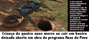 O menino Kelve Ariel da Silva Oliveira, de quatro anos, morreu na tarde desta sexta-feira (31), quando caiu em um bueiro deixado aberto na rua
