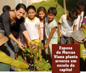 A primeira dama de Rio Branco, Gicélia Viana, plantou mudas de arvores com as crianças da escola Juvenal Antunes, no bairro Waldemar Maciel nesta sexta-feira.