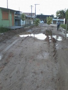 Os moradores da Rua José Higino no bairro da Cohab, em Tarauacá, fizeram um protesto bem humorado por conta das condições em que a via