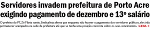 Salomão Matos, da redação de ac24horas salomao.matos@gmail.com Os servidores públicos municipais de Porto Acre, cidade administrada pelo Partido dos Trabalhadores (PT), que fica distante 56