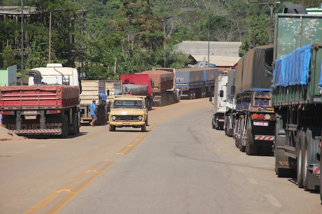 Caminhoneiros esperam por vários dias no posto aduaneiro da Receita Federal, em Epitaciolândia, a autorização para seguir viagem. A demora seria ocasionada por falta de