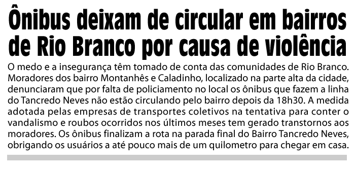 Gleydison Meireles – da redação do ac24horas ggreyck@gmail.com O medo e a insegurança têm tomado de conta das comunidades de Rio Branco. Na manhã desta