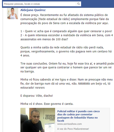 Gleydison Meireles – da redação do ac24horas ggreyck@gmail.com Em uma postagem feita na rede social Facebook, o jornalista e radialista Aldejane Pinto afirmou que sofreu
