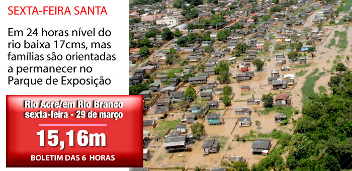 Depois da oscilação de dois centímetros na manhã desta quinta-feira, o nível do rio Acre desceu três centímetros durante à tarde, e mede 15,30 metros,