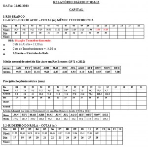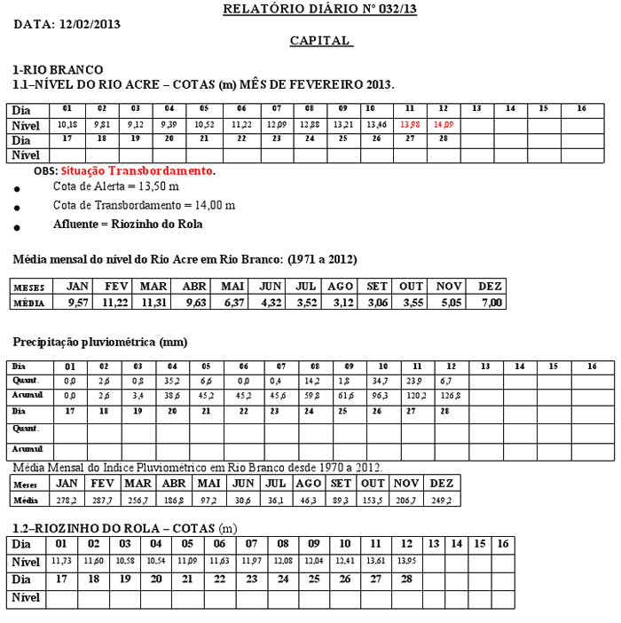 Salomão Matos Da redação de ac24horas O relatório oficial divulgado esta manhã pela Defesa Civil do Acre aponta que choveu nos últimos dois dias na