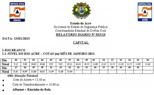 Nível de água do rio Acre alcança maior cota já registrada pela Defesa Civil em 2013