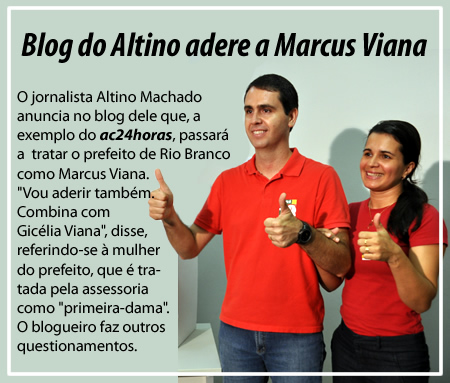O jornalista Altino Machado anuncia no blog dele que, a exemplo do ac24horas, passará a tratar o prefeito de Rio Branco como Marcus Viana. “Vou
